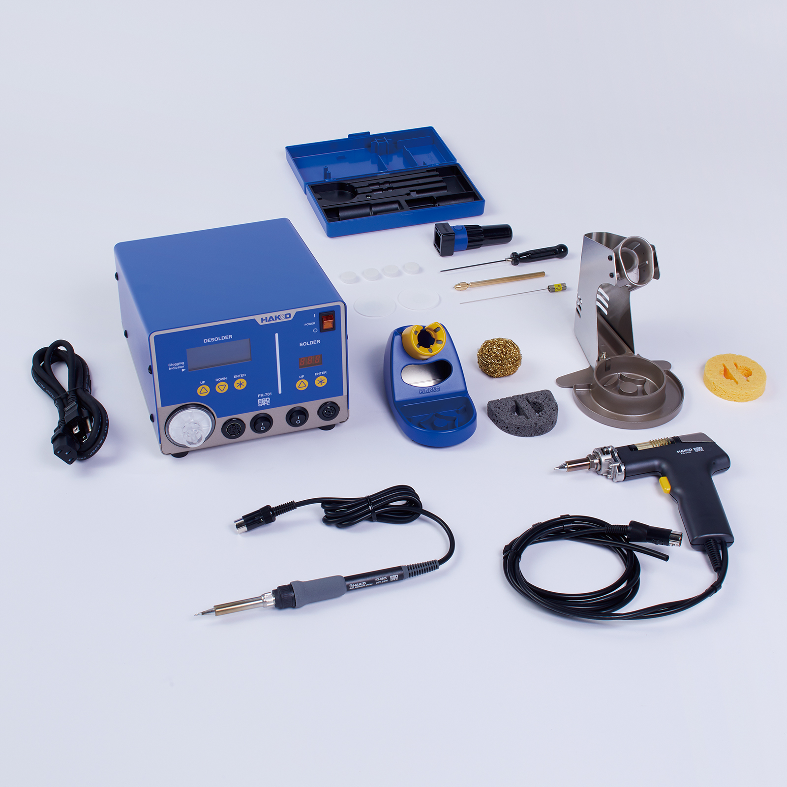 - ●本体 ●こて部 FX-8805(こて先B型付き) ●こて部 FR-4103(ノズルΦ1.0mm S型付き) ●こて台 FH-800(クリーニングスポンジ、クリーニングワイヤー付き) ●こて台 FH-410(クリーニングスポンジ付き) ●ツールボックス(クリーニングピン[ノズル1.0mm用]、クリーニングピン[ヒーター用]、クリーニングドリル[ノズルΦ1.0mm用]、ノズルレンチ、フィルター[2コ]、セラミックペーパーフィルター[4コ]) ●電源コード ●取扱説明書 ●登録書(保証書)